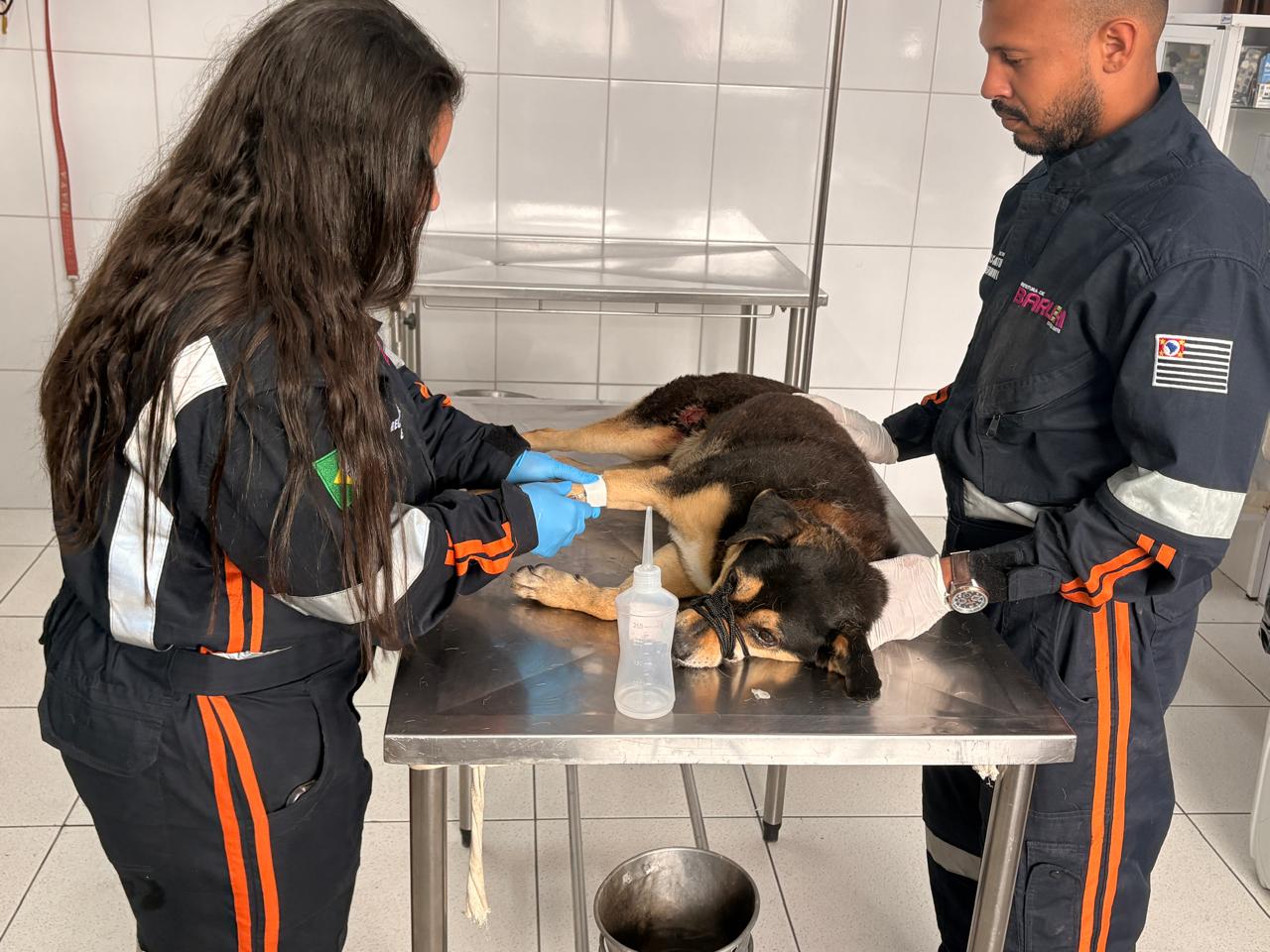 A cachorrinha foi encaminhada pela ambulância semi-UTI até o Cepad 2 para avaliação e tratamento. Durante o atendimento, ganhou o nome de Bela, embora fosse conhecida na vizinhança como “Neguinha”.