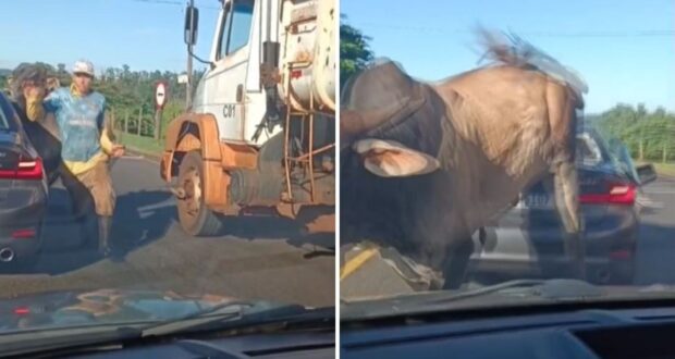 BMW atacada por touro em Ribeirão Preto