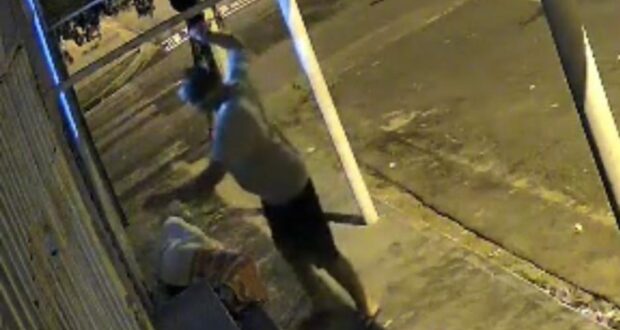A polícia foi acionada após o relato de um morador que testemunhou o ato através de câmeras de segurança. As imagens capturadas mostram o suspeito sentado ao lado da vítima, que estava deitada e coberta, momentos antes do ataque. O registro das câmeras de segurança indicam que a vítima recebeu oito facadas. Cinco minutos após o ataque inicial, o suspeito retornou ao local e interagiu com a vítima, que acabou caindo ao chão.