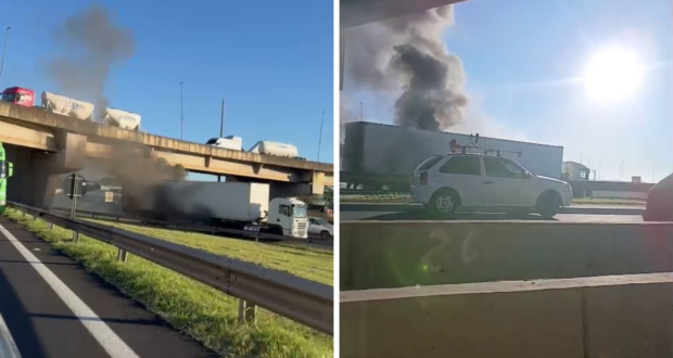 Incêndio em carreta bloqueia trecho da Anhanguera em Campinas