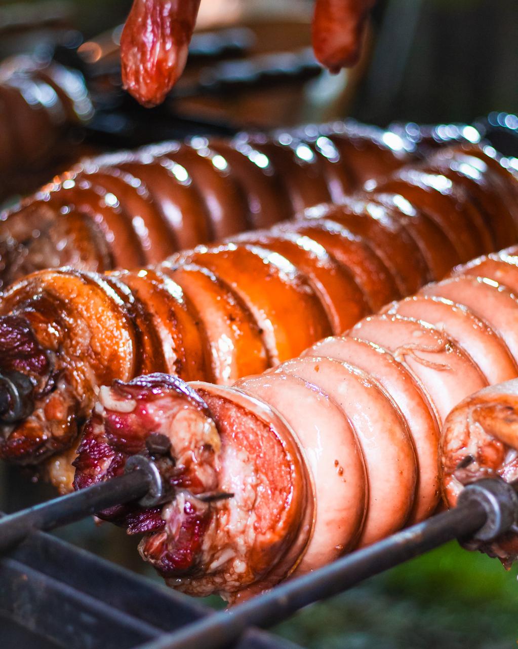 Ao todo, são aproximadamente 30 barracas, com receitas como costela fogo de chão, arroz carreteiro, feijão tropeiro, baião de dois e galinhada. Já o torresmo, carro-chefe do festival, pode ser encontrado em diferentes versões: de rolo, com costela, em lanches, com linguiça e na clássica porção picada.