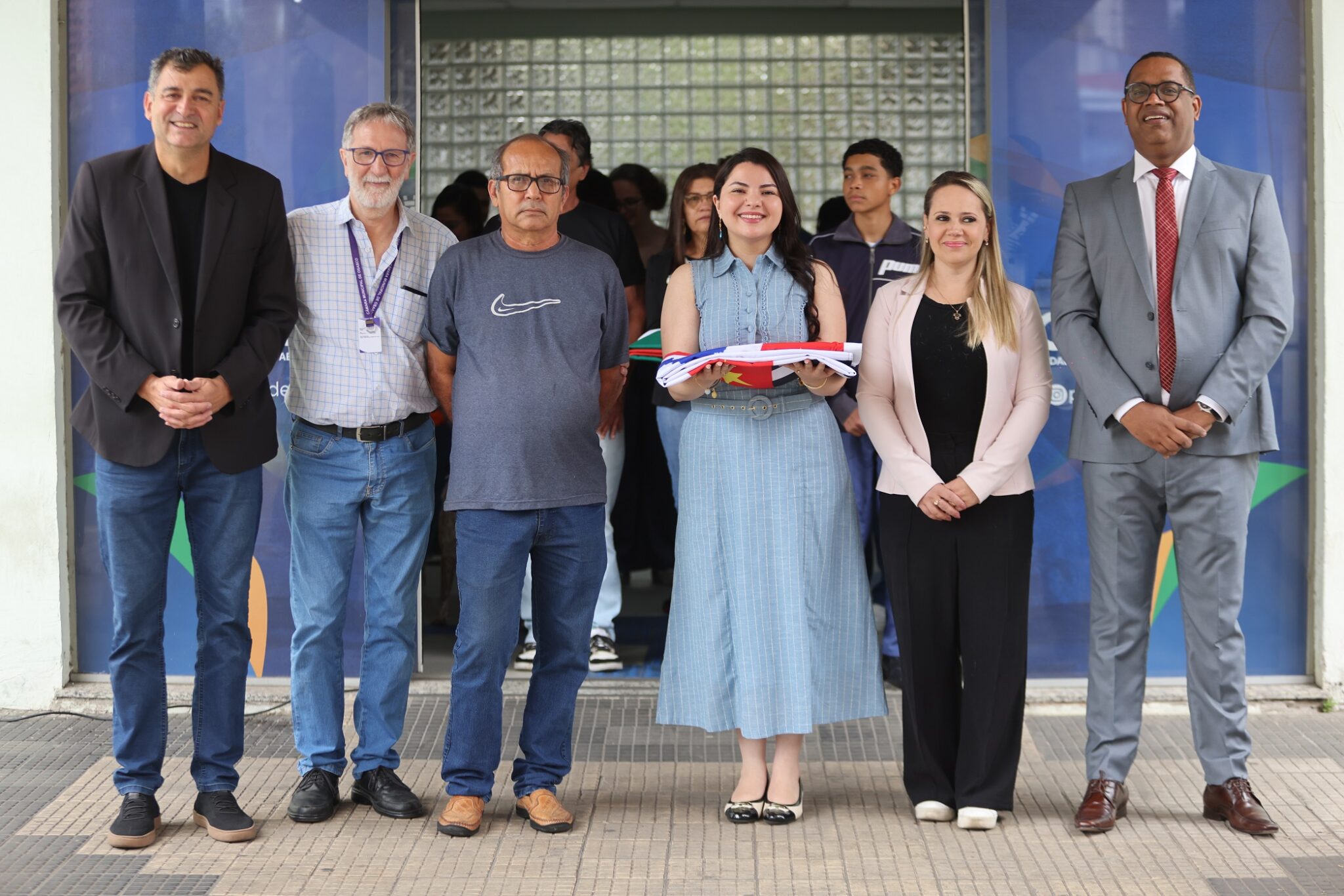 Durante o ato, Cláudio foi responsável pela condução e hasteamento da Bandeira do Brasil; Ingrid, pela do Estado de São Paulo; e Maria Sandra, pela de Osasco.