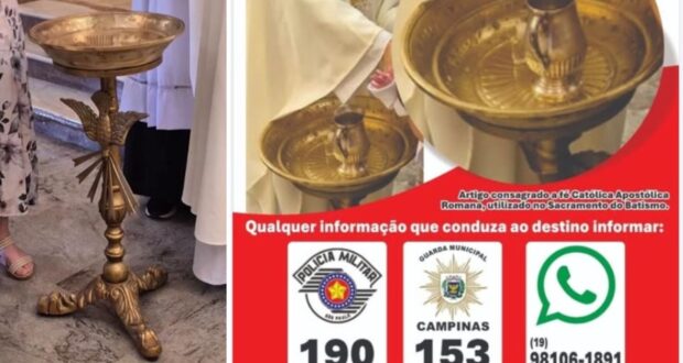 A comunidade católica de Campinas, no interior de São Paulo, mobiliza-se após o furto de uma valiosa pia batismal da Paróquia Nossa Senhora do Rosário. O objeto, confeccionado em bronze e com um profundo valor religioso e simbólico para a fé católica, foi levado da igreja, localizada no Jardim Chapadão. Avaliada em R$ 19 mil, a pia batismal é descrita como uma peça consagrada e artesanal, cuja ausência impede a realização de novos batismos na paróquia. A Polícia Civil já foi comunicada e investiga o caso, enquanto a paróquia faz um apelo emocionado para que qualquer informação que leve à sua recuperação seja compartilhada, reforçando o respeito pelos espaços sagrados e pelos sinais da fé.
