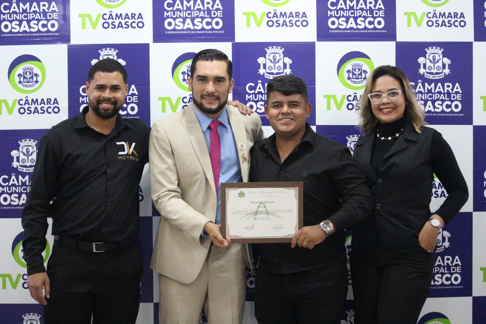 A organização da Parada Oz, representada por Higor Andrade, Drag Tiffany, Alessandra Dumdum e Otávio Henrique, recebeu do vereador Heber do JuntOZ (PT) a Moção de Congratulações nº 509/2025, pela realização da 8ª edição da Parada do Orgulho LGBTQIA+ de Osasco, realizada em 21 de setembro.