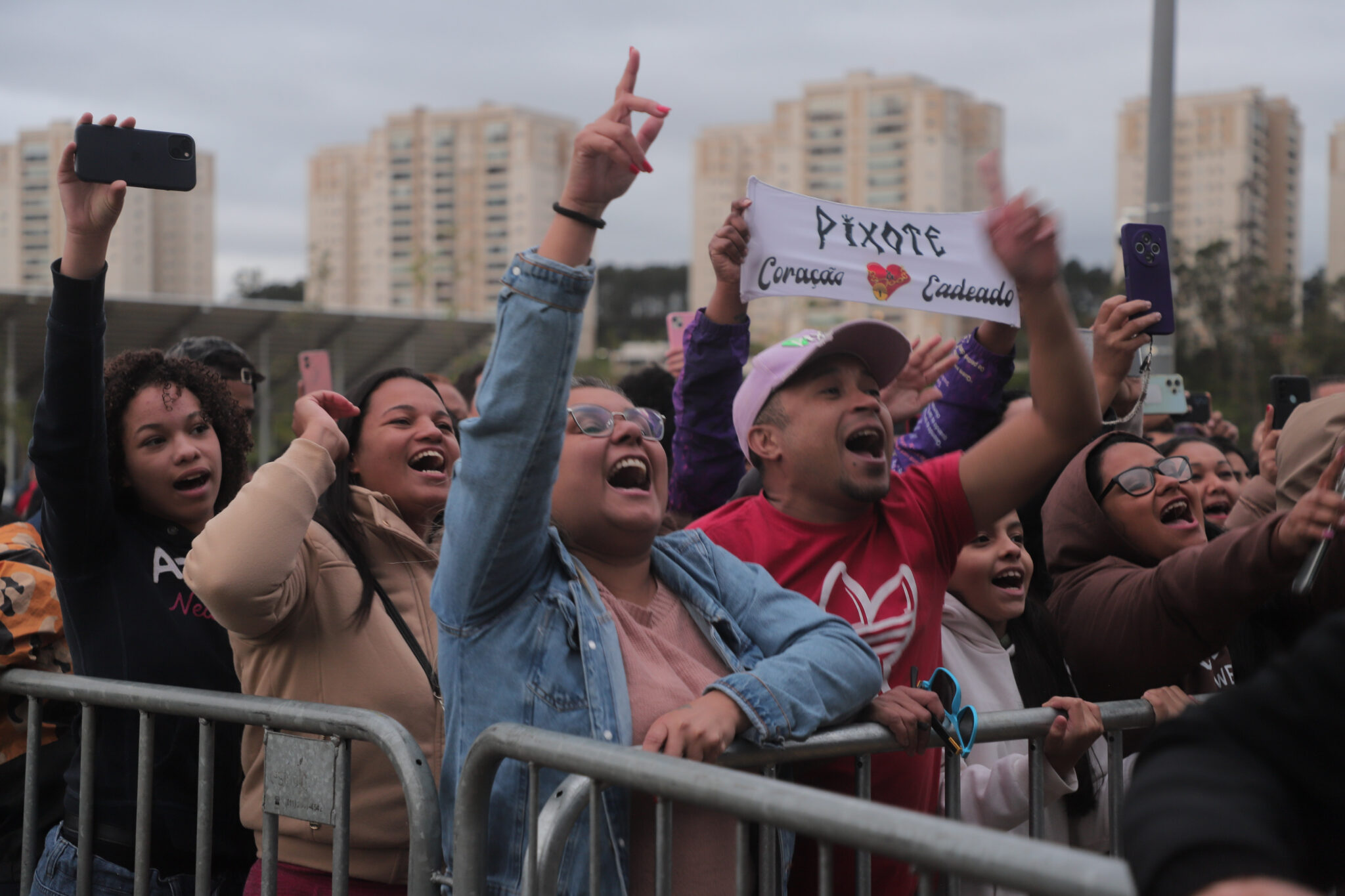 Uma das primeiras pessoas a chegar para o espetáculo e ficar “no gargarejo” foi Ana Cláudia Pereira dos Santos, moradora do Parque Viana, que estava com as duas filhas menores (Maria Eduarda e Mariana): “O Dodô é a minha primeira paixão; a segunda (o marido Anderson) ficou lá em casa porque está com dor no pé. Só não cheguei antes das 14 horas porque tive que preparar o almoço para toda a família”, revelou ela, que conseguiu vencer a concorrência e tirar uma selfie com o ídolo após a apresentação.